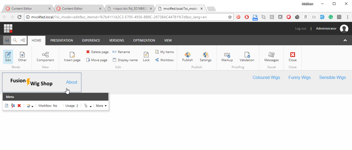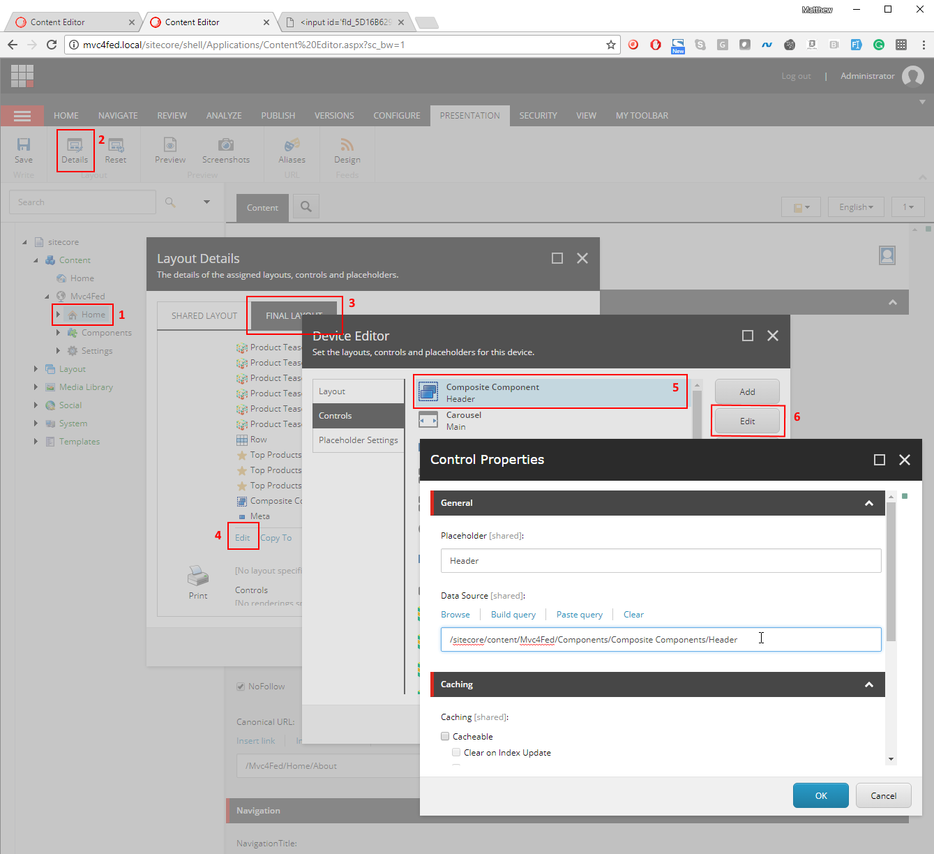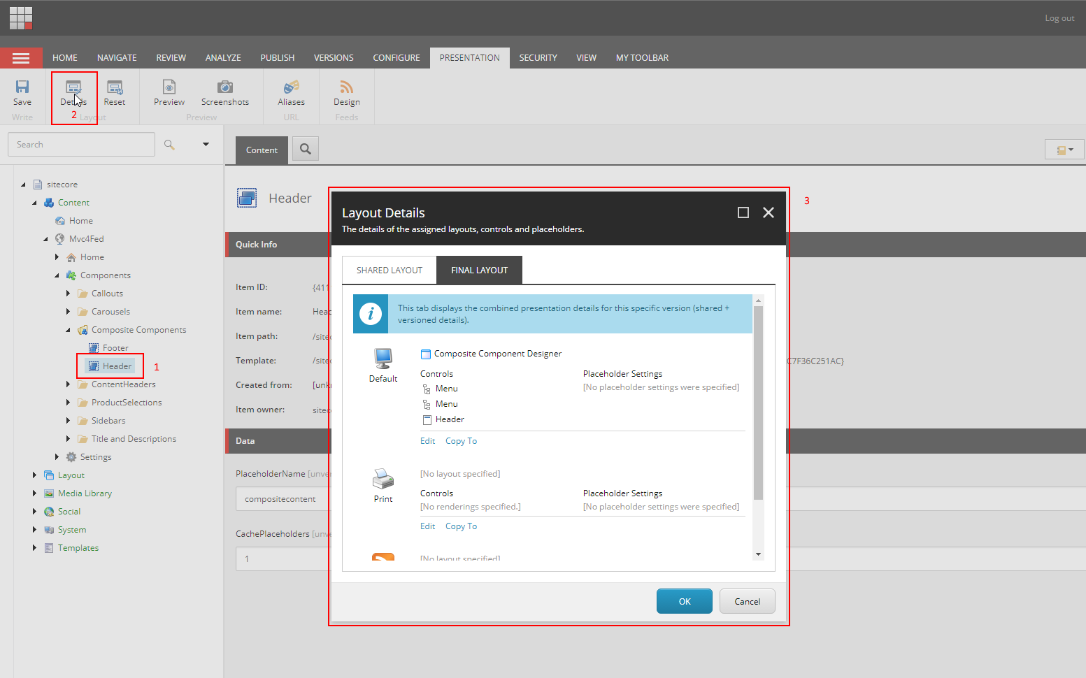 Componentized header. Duplicated presentation details on the standard values of each page template.