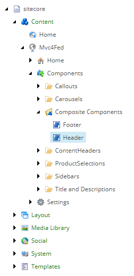 The outer structure for the site's header is in Header.cshtml which contains left and right placeholders. This lives in the Common project within the Project layer.