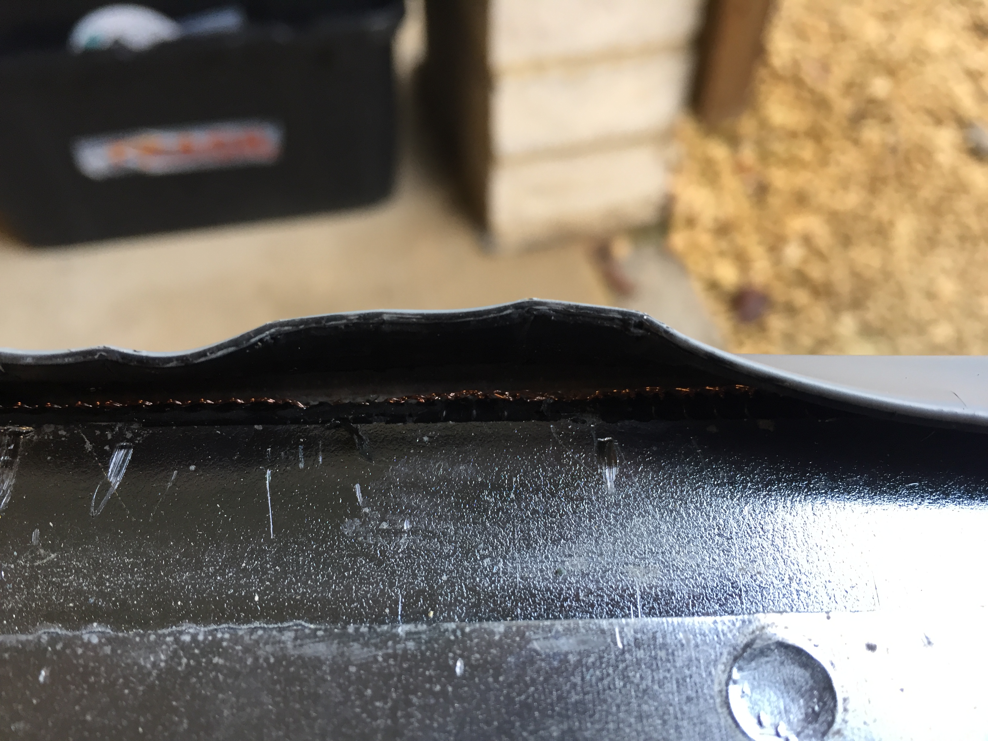 The battery case is steel and formed from two halves bonded together. There are bolts on both sides of the case but these do not hold the lid on, they secure the batteries in place. The top is bonded to the bottom with glue containing a copper mesh. I learned that this is to electrically connect the upper and lower parts. The only way to pull the battery apart was to pry the lip of the top part with a screwdriver, cutting through the glue and copper mesh as I went along. This battery is evidently not designed with maintenance in mind.